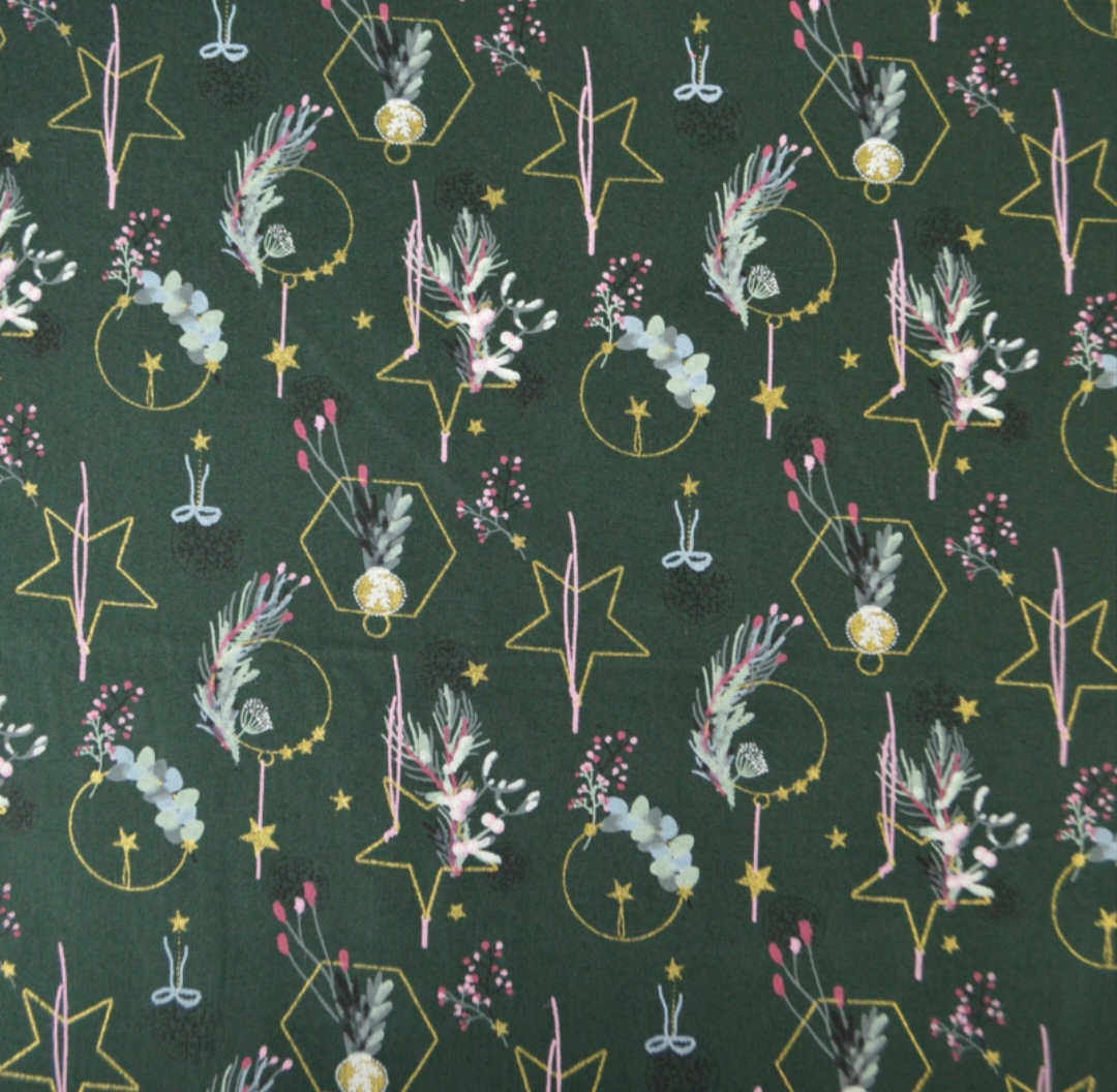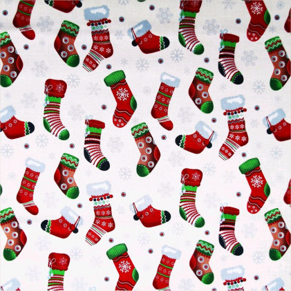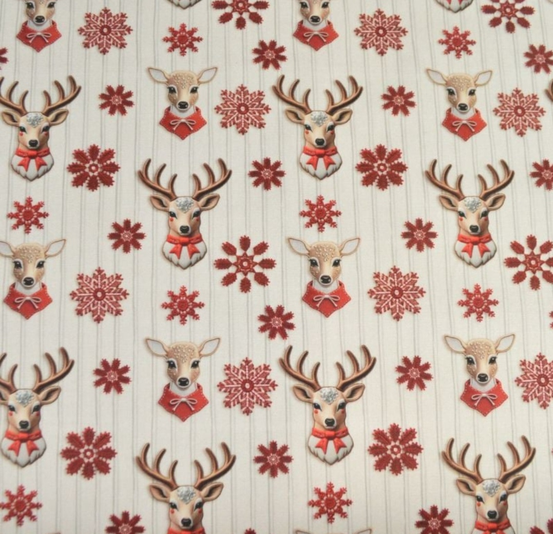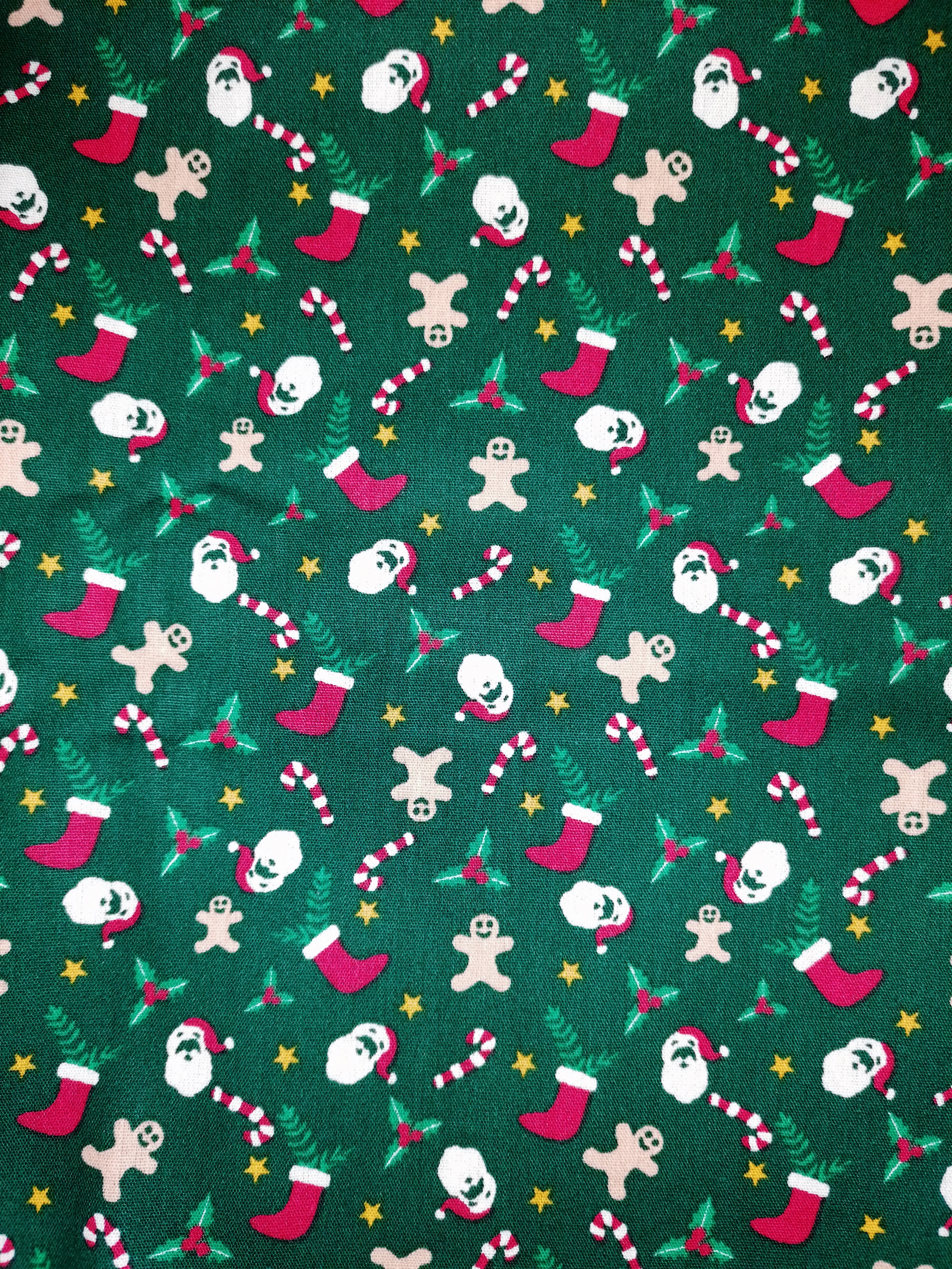 | Tissu | Biche Noël, Casse Noisette, Décos Noël vert, Blanc étoiles dorées, Blanc motifs chaussettes, Blanc sapins bleu, Gris étoiles dorées, Guirlande, Houx, Noël rouge et doré, Noël vert et doré, Père Noël vert, Rennes doré et blanc, Rouge bonnets et chaussettes, Rouge boules de noël, Rouge étoiles dorées, Rouge flocons et cloches, Rouge motifs chaussettes, Rouge sapins et rennes |